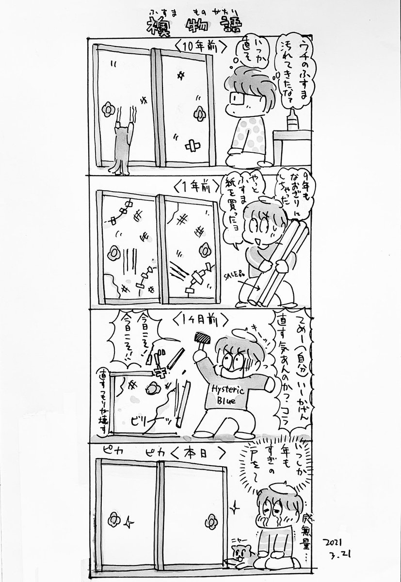 1 8 10年越しの襖貼り替え物語を漫画化しました。 ものぐさにもほどがある。 #エッセイ漫画 #日常漫画 #漫画ブログ #マンガ #manga #4コマ漫画 #毎日更新 #漫画家 #漫画家志望 #襖 #襖物語 #なおざり #ものぐさ 21/03/22 00:38