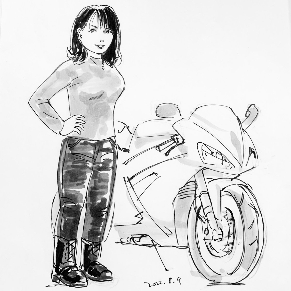 0 7 フリーペーパーに載っていたバイク女子がカッコよかったのでイラスト化しました。 #イラスト 22/08/04 23:41