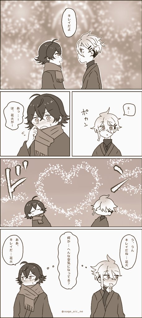 5 39 #水麿ワンドロワンライ @simr60min 開催ありがとうございます! 59回お題【空気 花火】お借りしました どっかの花火大会にて 22/08/07 00:37