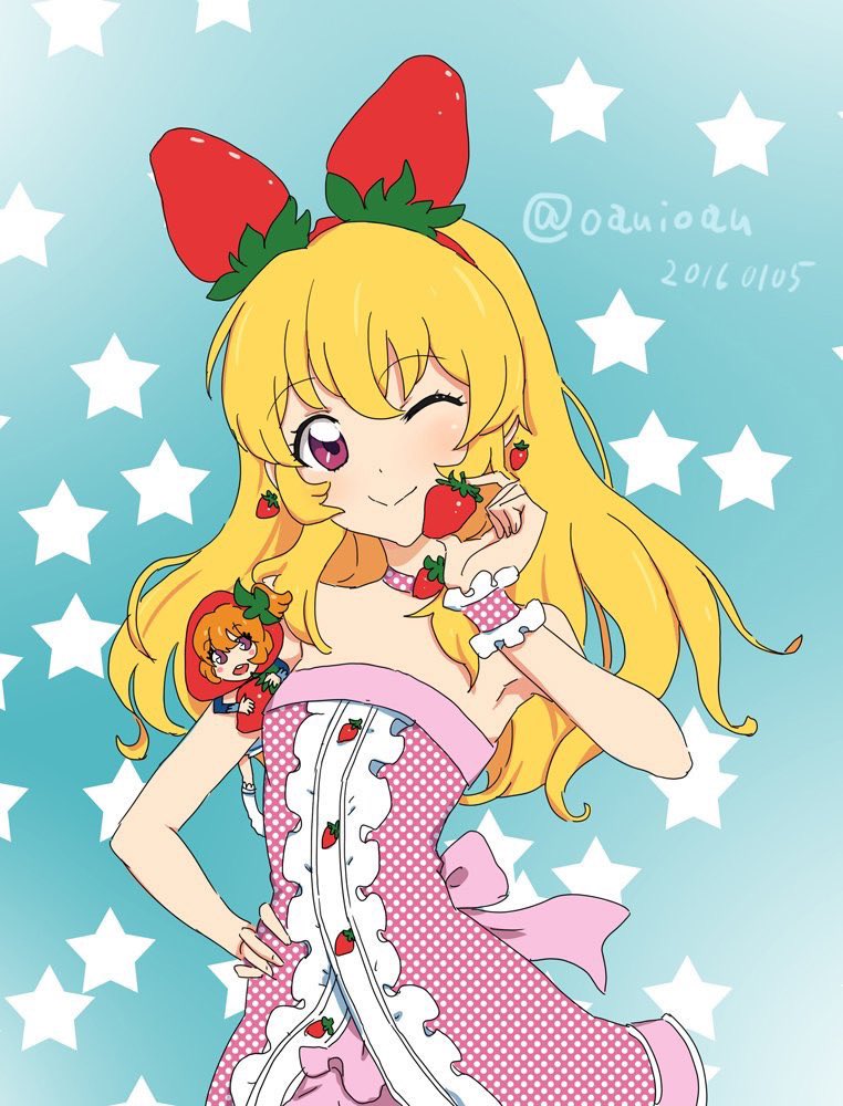 #はじめて描いたアイカツ絵 9周年おめでとうございます🎊 初めて描いたいちごちゃんは後ろ姿だった。たしかセイラちゃんのおたおめ絵。
