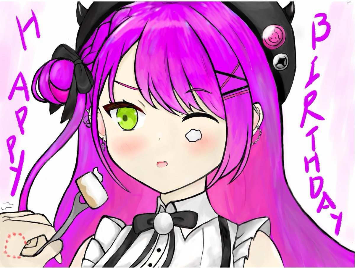 Happy birthday 💜💜💜 #猫又おかゆ生誕祭2023 #絵かゆ