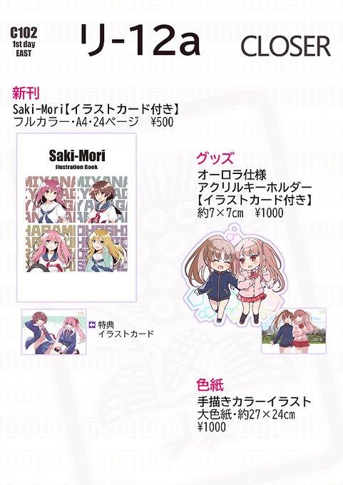C102のお品書きはコチラ 新刊フルカラーイラスト本 なぜか特殊仕様にしたアクキー これから描く色紙