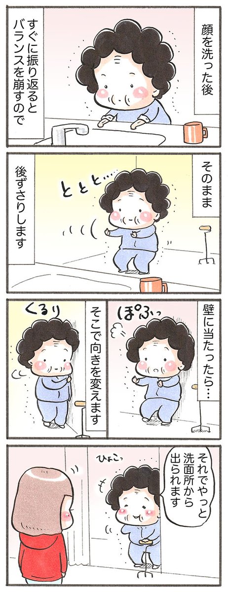 0 3 都度、工夫を進化させて教えてくれます‥ 「歩行の工夫②」〜洗面所バージョン〜 #漫画が読めるハッシュタグ 23/04/20 23:10