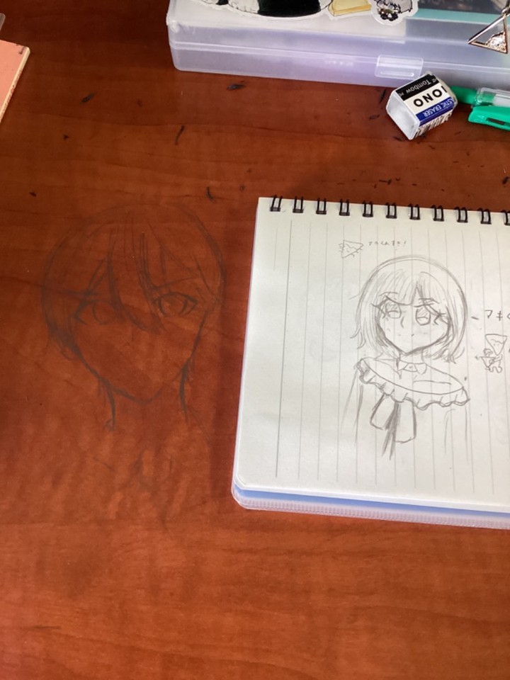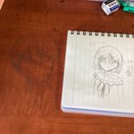0 1 #金剛力也像 #アキくんちゃんアート 机に書いてあるもちさんと顎くん(?)が師匠がかいてアキくんはえいが書きました! 23/04/18 19:26