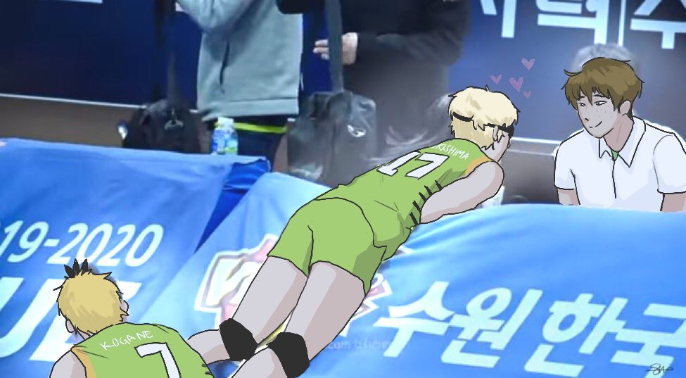 Tell me no one has made this version yet,,, #tsukiyama #sendaifrogs (=´∀`) Tsukishima is a lil distracted ehehehheh