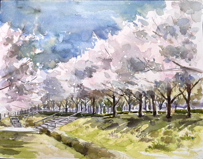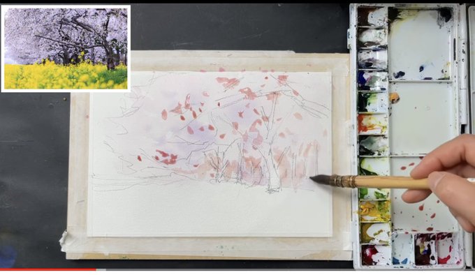 明日雪降るのか... 春気分でYouTubeUPしました。 #水彩画 #桜 #透明水彩 #初心者のための水彩画講座 【初心者のための水彩画講座】桜と菜の花の風景 youtu.be/ZJufN5rSV1U