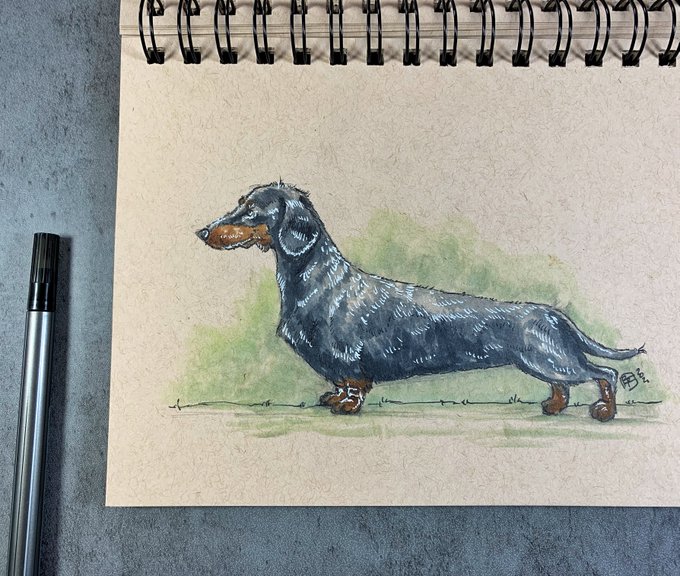 A precious little Dachshund dog today for #Inktober. Original is on 5x8in. tonal paper and I still love the way it makes these illustrations look vintage-y #Inktober2021 #artist #artistontwittter