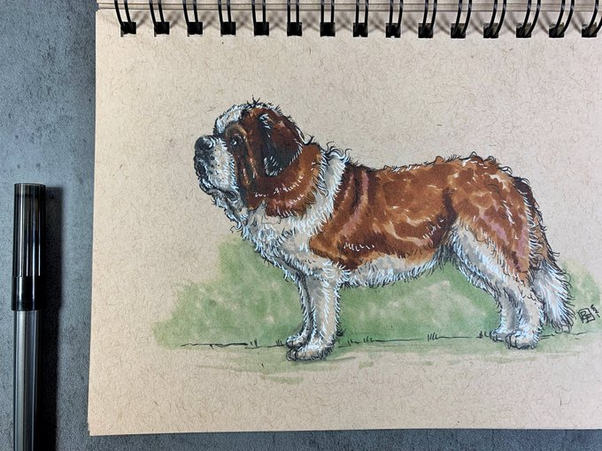 A new dog for #Inktober today...a classic Saint Bernard! #Inktober2021 #SaintBernards #Artist #ArtistOnTwitter