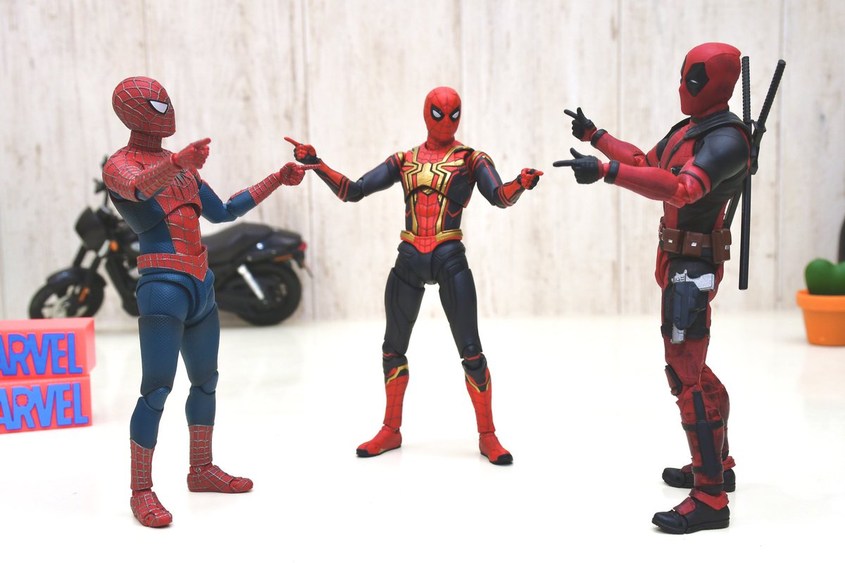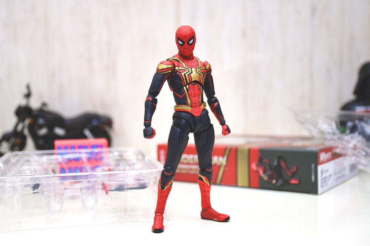 インテグレットアーツスパイディ開封。シルエット良き。ピーター3はまだなので似てる奴で代用。 #オモ写 #toyphotography #SpiderMan