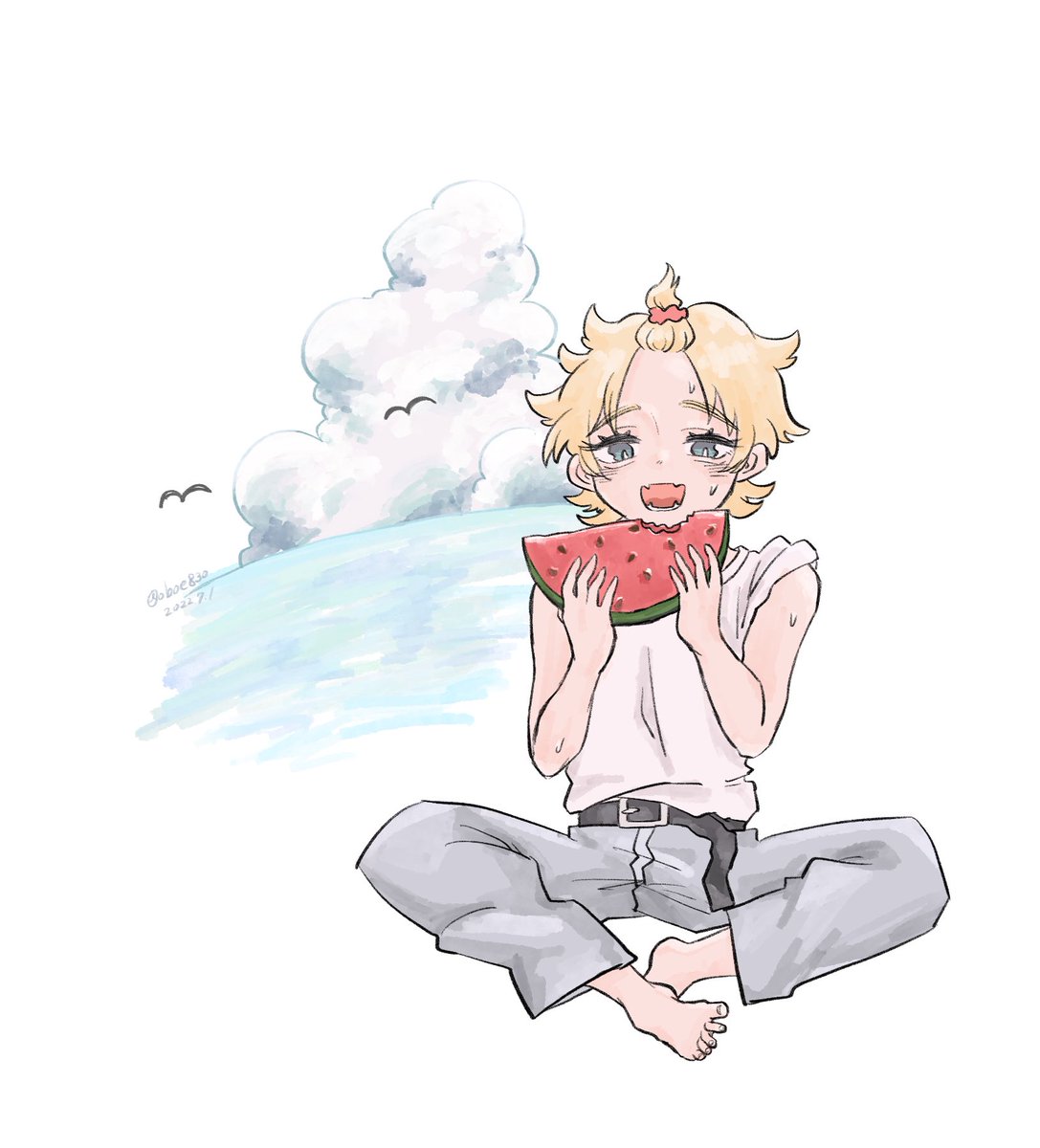 0 5 ☀️🍉 #夏 #イラスト 22/07/01 17:45