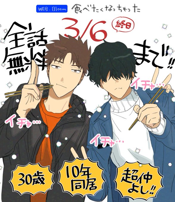 単行本が発売するので全話無料公開がそろそろ終わります! 親友・家族・同僚10年目の30歳同士が恋人になっていくお話です!興味のある方は今のうちに是非✊ #商業BL #食べたくなっちゃった #食べなつ 3/5までの公式サイト☞bloom.homesha.co.jp/webcomic/tabet… 3/6までのpixivコミック☞comic.pixiv.net/works/8385