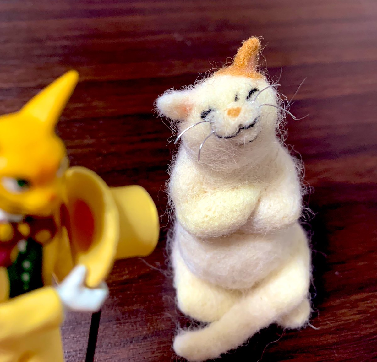 少し前に、猫の恩返しのムタさん作りました! もっとムチムチさせてもよかったな… ていうかジブリむずいな #羊毛フェルト