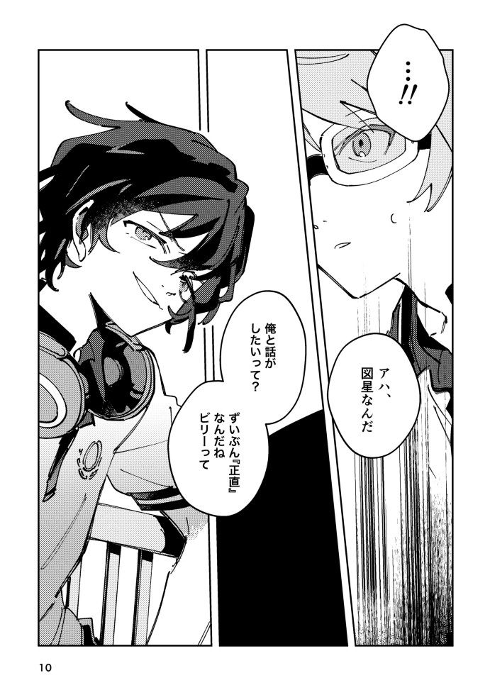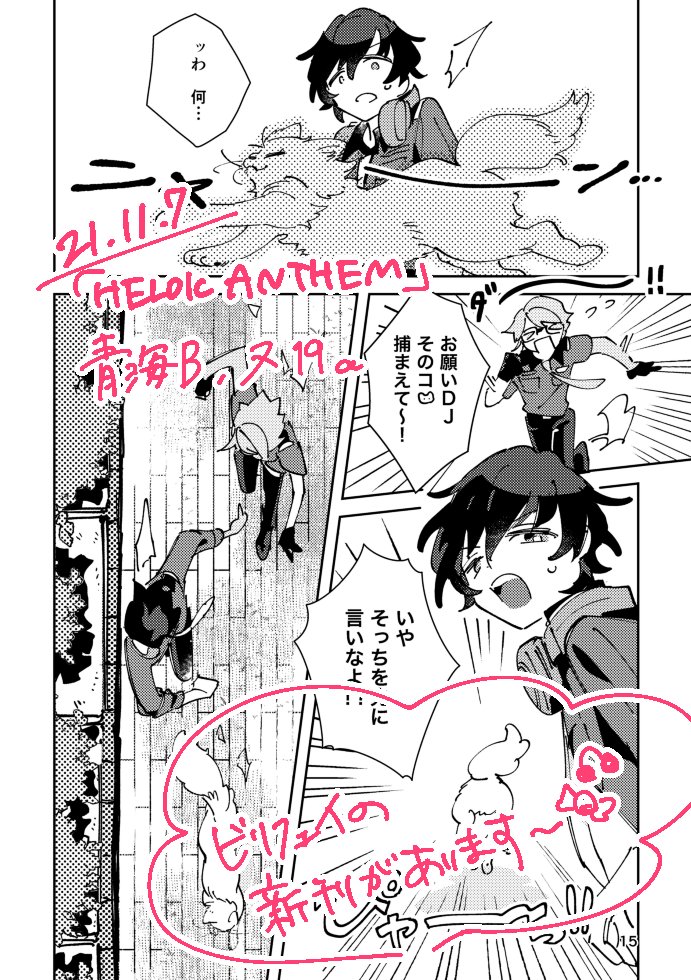 26 111 11/7 HEROIC ANTHEM 頒布予定のビリフェイ新刊サンプルです。ビリーとフェイス、アカデミー時代の記憶の小話。 「君のしんそう」(1/2) ビリフェイ/A5/30p/¥400 青海B【ヌ-19a】yab. 当日の頒布物は後日お品書きにまとめます!! 21/11/02 18:02