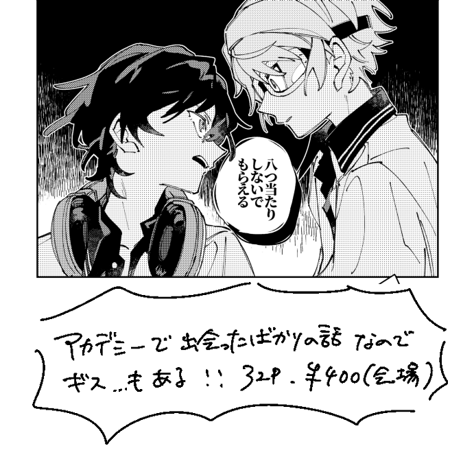 5/4 SUPER HEROIC ANTHEM 2022 新刊サンプルです〜ビリフェイ、アカデミー時代の出会いのねつ造 「雨、降って晴天」32p 400円 (1/3)