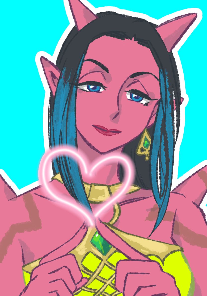 ドラクエ10で作ったアバターちゃん描いた👹 肌色タイプ忘れちゃったけど一番赤ピンクっぽい奴です。