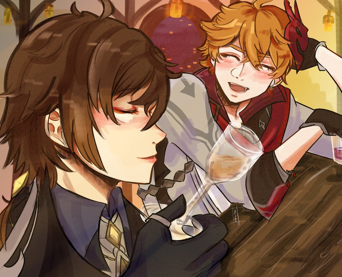 Chili out for a drink 🪨🌊 #原神 #genshinimpact #genshinimpactfanart #chili #Tartali #钟离 #达达利亚 #zhongli #tartaglia