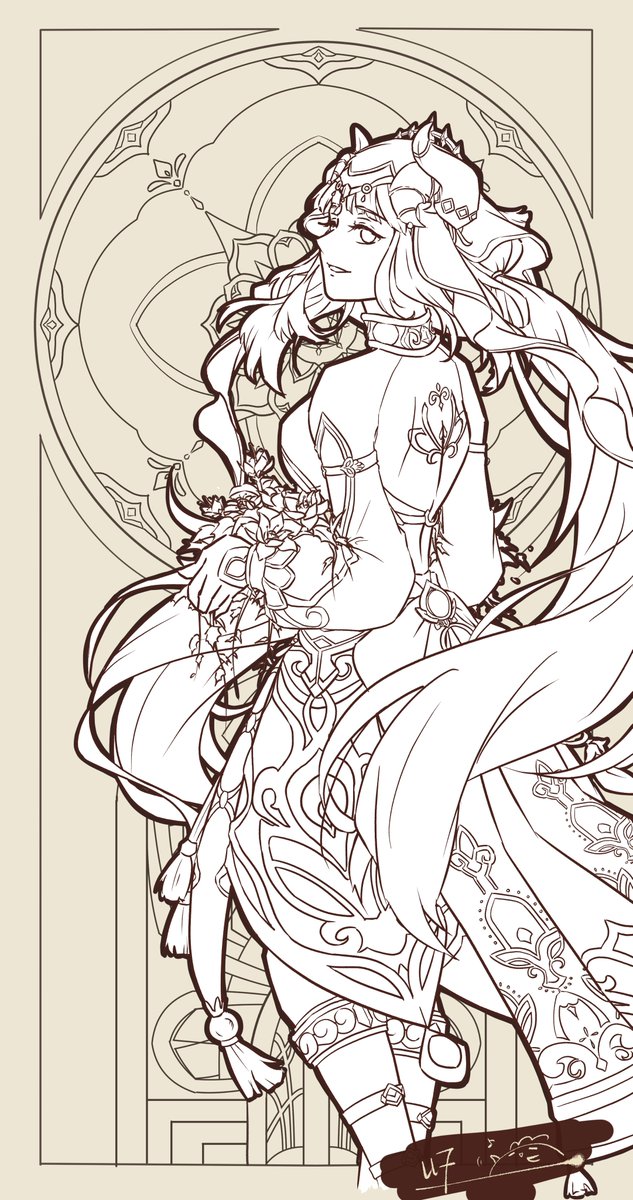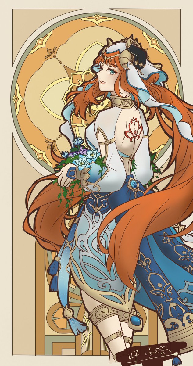 Happy birthday!!! Our most beautiful dancer- Nilou~~~ The reference painting is Summer from The Seasons series(1990) by artist Alphonse Mucha. Picture-White radish Article- Black radish #原神 #GenshinImpact #genshinimpactfanart #ニィロウ #妮露 #Nilou #ニィロウ生誕祭2022
