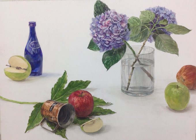 12 136 日本画です。 試験まで残りわずかになりました、無理をしすぎないで体調に気をつけましょう! #東京芸大 #日本画 #芸大 #art #painting #illustration #美術 #絵 #イラスト #静物着彩 #着彩 #デッサン #japaneseart #アート #東京芸大 #美術予備校 #静物デッサン #芸術 #絵画 #花 #りんご #薔薇 22/02/21 16:39