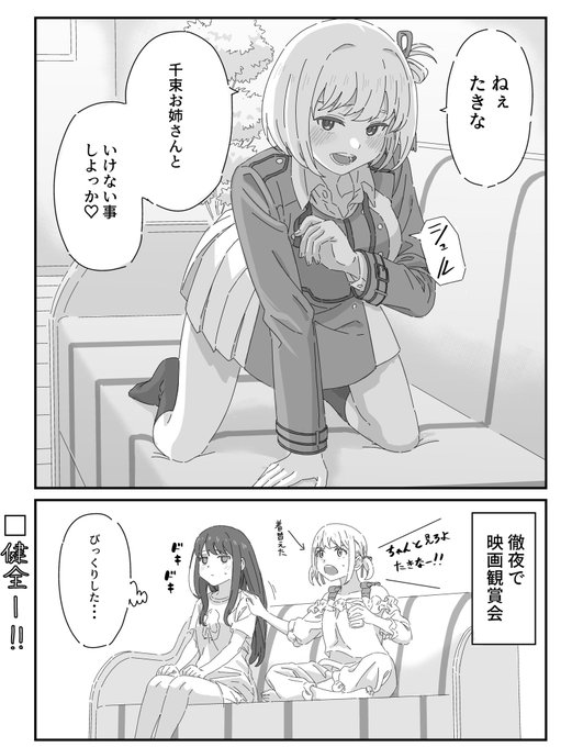 五月雨様(@Samidare_Haduki )主催のリコリコアンソロジーにて漫画2Pを寄稿させて頂きました!!ちさたきがホラー映画をみる漫画です!宜しくお願いします! #StaywithYouちさたき