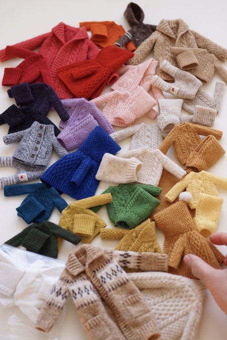 ミニチュアニットいろいろ🧶 #編み物 #セーター #手編み #ねんどろいどどーる #オビツ11 #メガミデバイス #ピコニーモ #フォーチュンワンダ #リカちゃん #プチブライス #chuchudoll