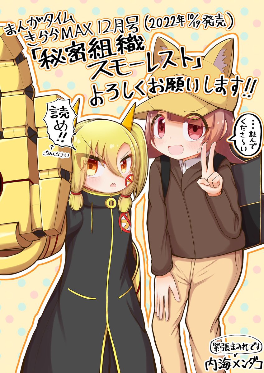 改めて8月12日開催のコミケ102にて『キッサルリ』様の『カヅホ先生作品二次創作合同誌』に「カガクチョップ」で参加させていただいております。 酷い文字遊びまみれの4ページの漫画です。 よろしくお願いいたします。 キルミーも描きたかったけどカガクの宣伝もしないとともがいた結果です。↓ twitter.com/2outni4/status…