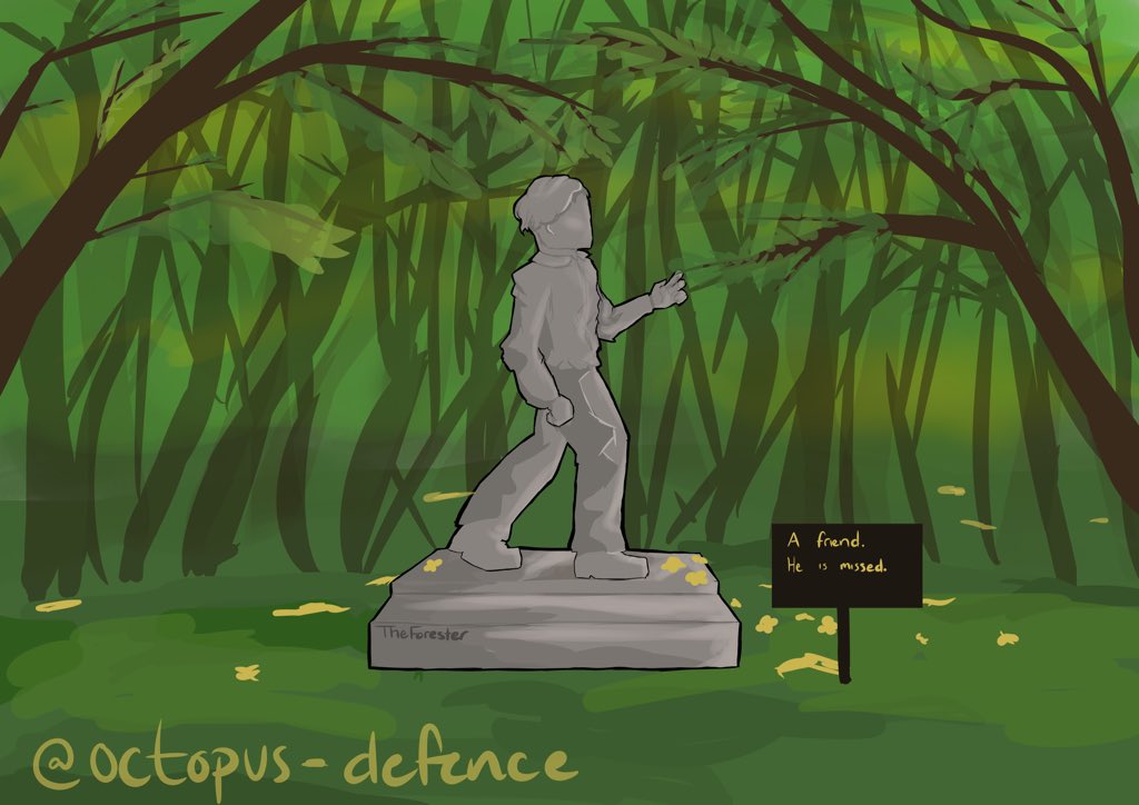 there is a statue in the forest. the trees bend around him, whispering apologies laden with sorrow and grief. the wind through the leaves sings mournful songs as time seems frozen in the glade. #hbomb94 #hbombfanart #dreamsmpfanart #dreamsmp #dsmpart #hbomb