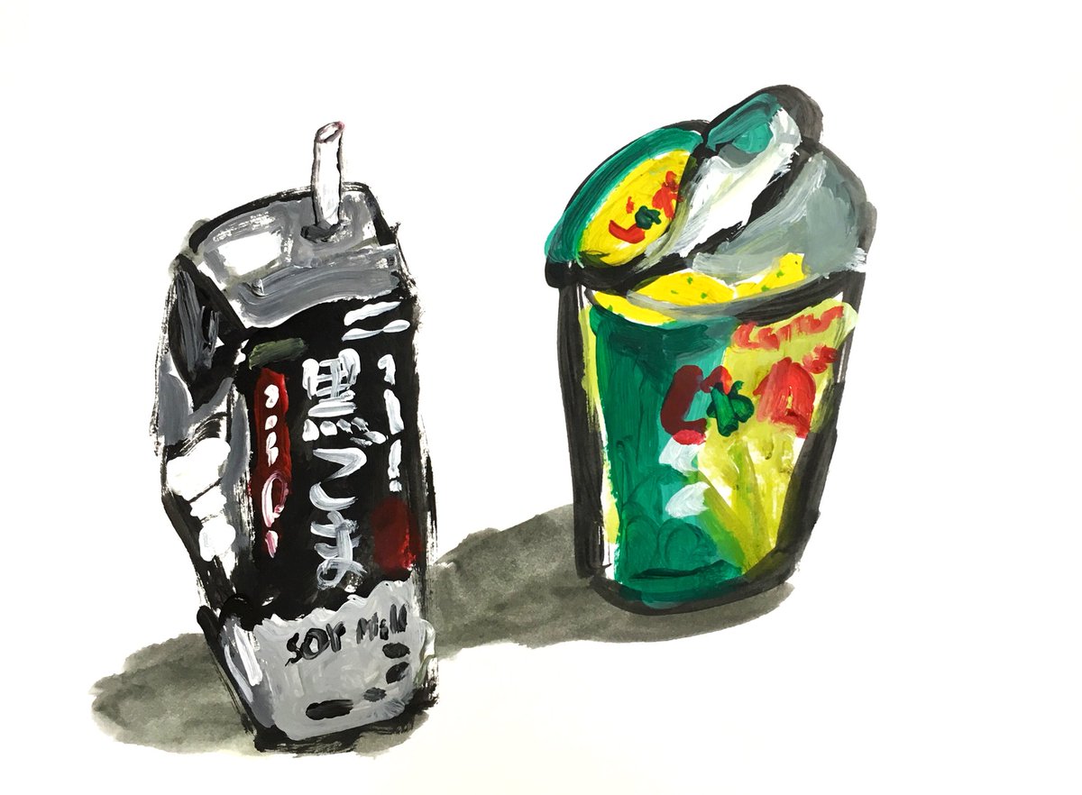 カップ麺 じゃがりこ、豆乳 ラーメン 山菜 #illustration #foodillustration #イラストレーション