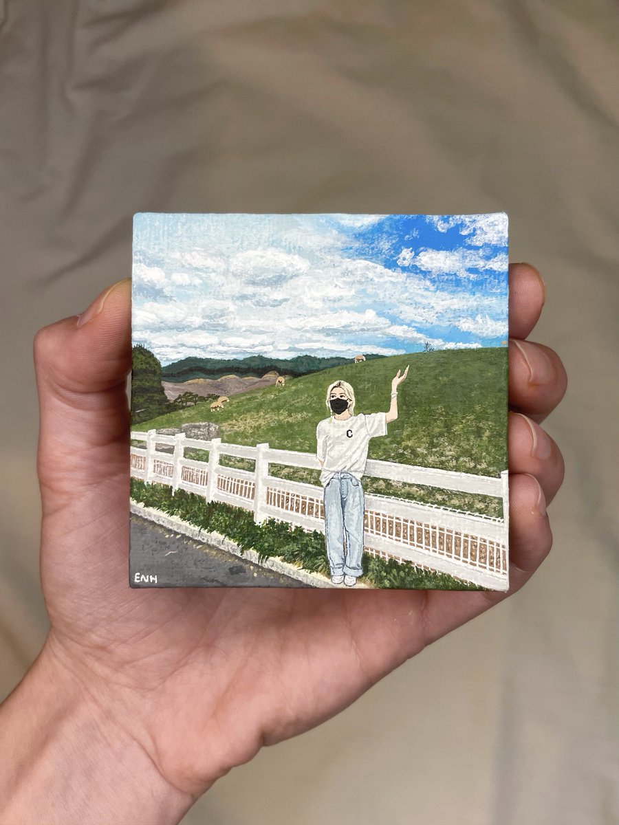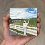 “Blue Skies with Jungeun,” acrylic on canvas, 3x3 in. ☁️ - For my favorite person, happy birthday 정은이 🤍 - #loonafanart @loonatheworld