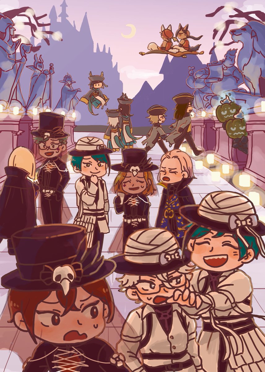 HappyHalloween!!🎃 半年前イラスト集で描いたものですが、イベント記念に引っ張り出してきました!皆着てくれて嬉しい…! ※顔あり監 #twstファンアート #ツイステハロウィーン #twstプラス