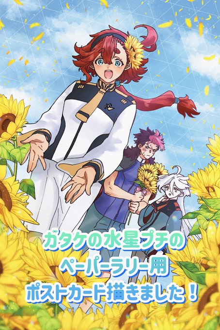 ガタケの水星プチのペーパーラリー用ポストカードを描かせていただきました。ペーパー2枚と引き換えでもらえます。よろしくお願いします〜🌻🌻🌻 twitter.com/gataket/status…