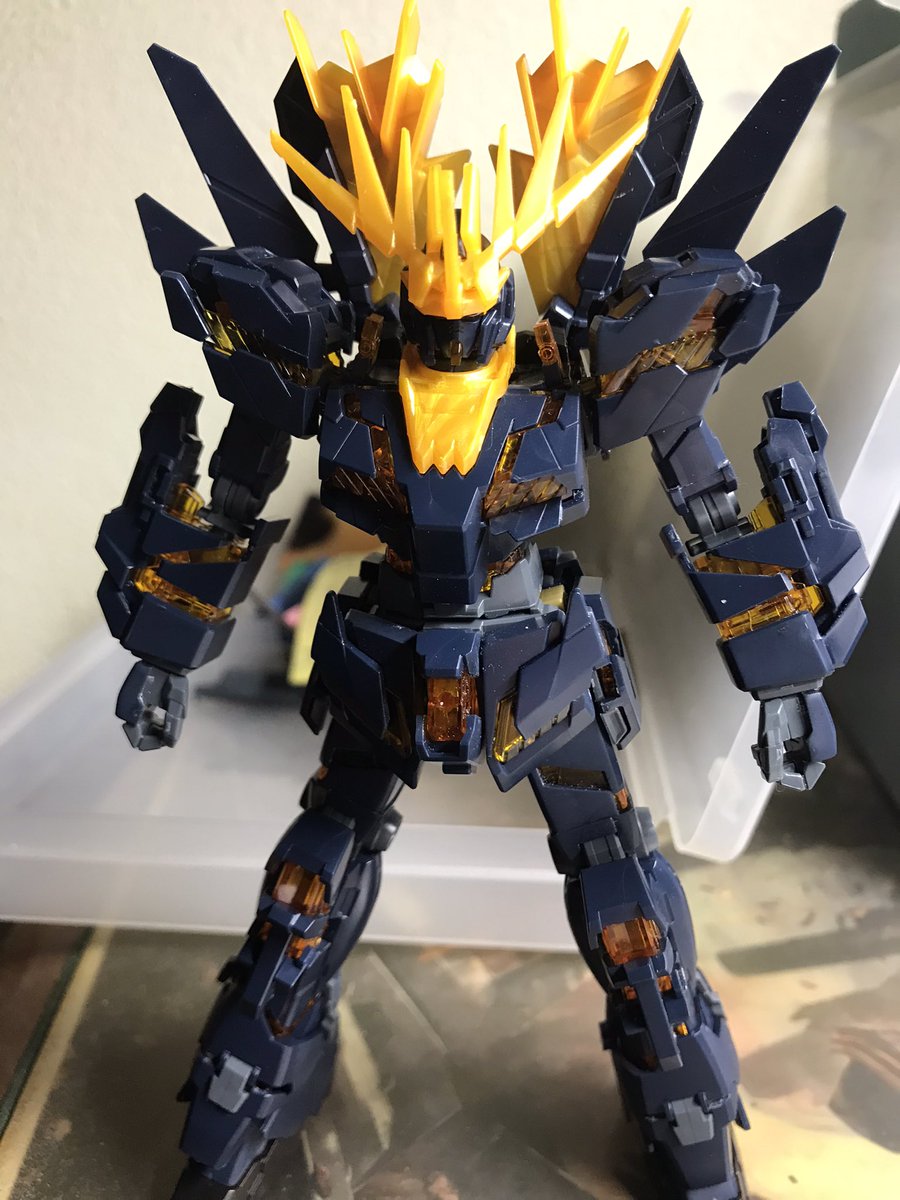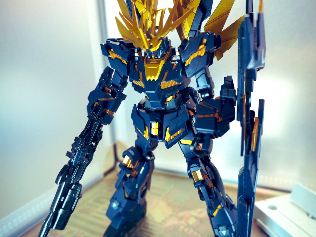 久しぶりのツイート 亀の歩くスピードで完成まで至りました!! HGUCバンシィ・ノルン、完成‼️🎊 今回はサイコフレームのエアブラシ塗装に挑戦。後は金デカールで豪華さを演出。あー!カッコいい!! #ガンプラの画像貼るとRTされると聞いて #ガンプラ好きと繋がりたい