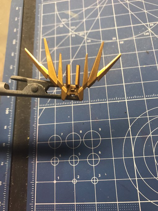 バンシィ進捗 ツノ塗装しました! 好みの色になりました(^^) サイコフレームも塗装終わってます! パーツ多くてツライ 次は細かいところの筆塗りだぁ! #ガンプラはどんな自由な発想で作ってもいいんだ #ガンプラの画像を貼るとRTされると聞いて