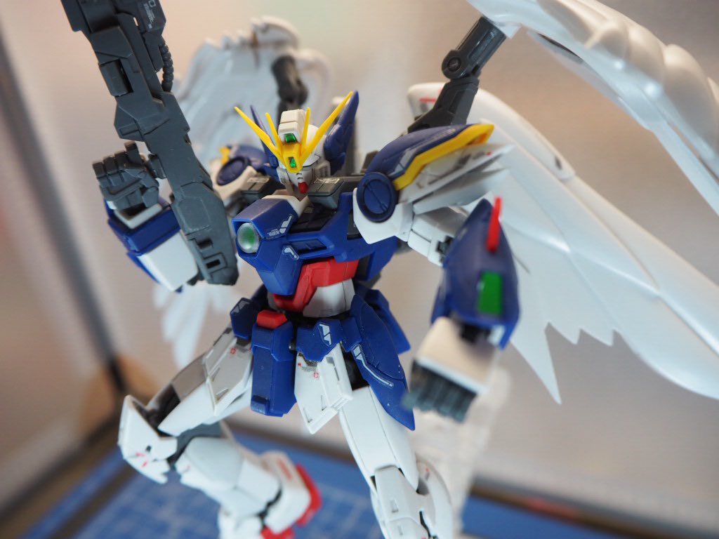 RGウイングゼロEW完成!! スミ入れとつや消し、翼はパールホワイトで塗装。ストレートに組みました!動くけどポロリがあったので気を遣います、、 #ガンプラ好きと繋がりたい #ガンプラの画像を貼るとRTされると聞いて