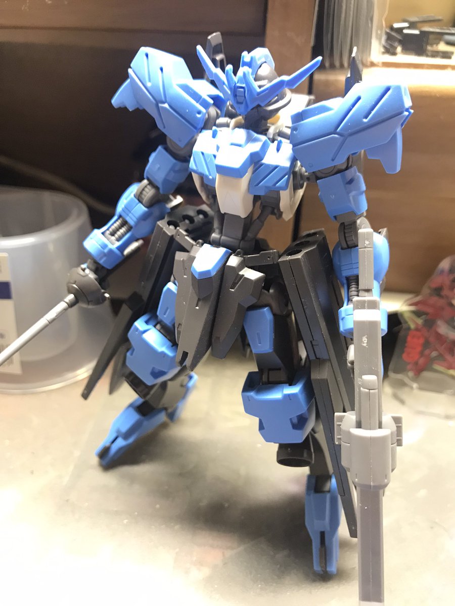ガンダムヴィダール素組み完成✨ Zガンダム、FMエアリアルとタイムラインにたくさん流れますが、ボクはコレです😅 部分塗装と水色のパーツはガンダムマーカーで塗りたいと思います✌️ #ガンプラの画像を貼るとRTされると聞いて #ガンプラ好きと繋がりたい #鉄血のオルフェンズ