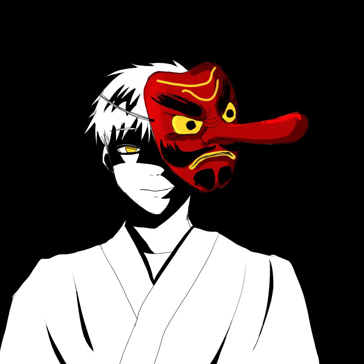 【天狗】 オリジナルキャラお面屋さん。 天狗の面には魔除けの意味が込められている。夜中には会いたくないね。 #イラスト #お絵描き #オリキャライラスト #illustration #art #drawing #characterdesign #originalcharacter