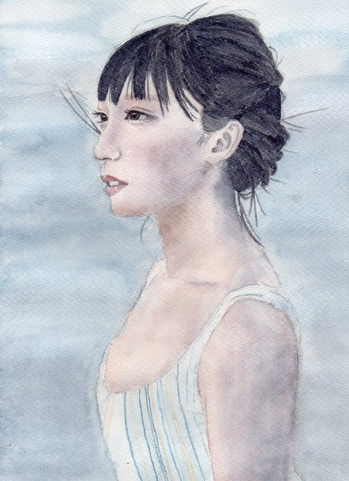 残暑お見舞い申し上げます☀️ #水彩画 #ポートレート #いいと思ったらRT