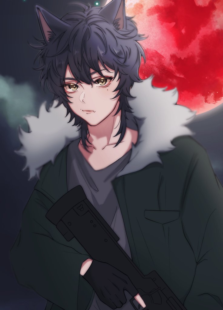 #絵描きさんと繫がりたい #絵描きさんフォロバ100 #春の創作クラスタフォロー祭り #絵文字3つもらってキャラデザする 全反応巡回します!🏃 🐺🌕🔫