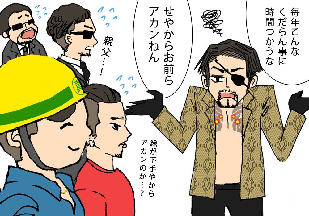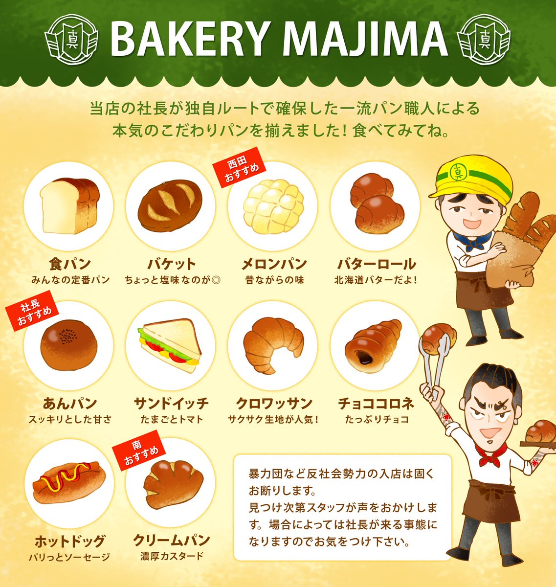真島組がパン屋さんをOPENしたら… と想像しながら描きました🍞