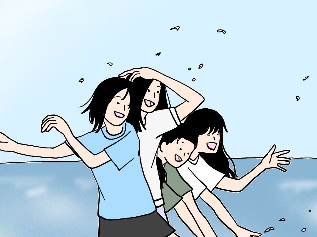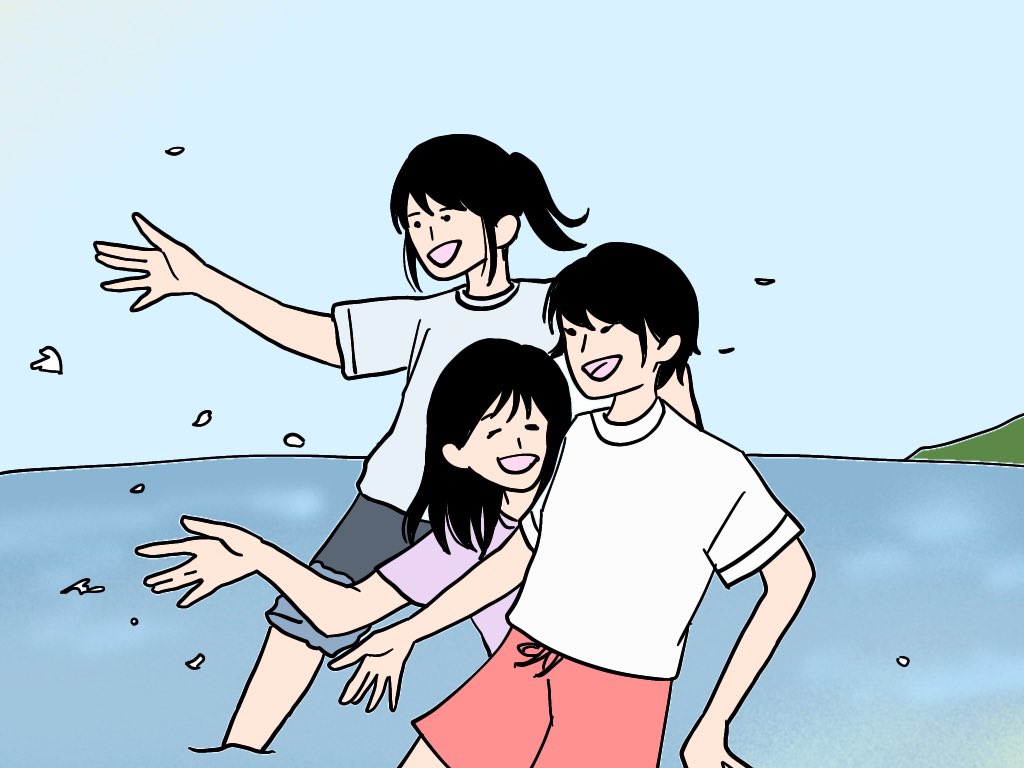友達と海🌊🐬 #イラスト #お絵描き #海 #旅行