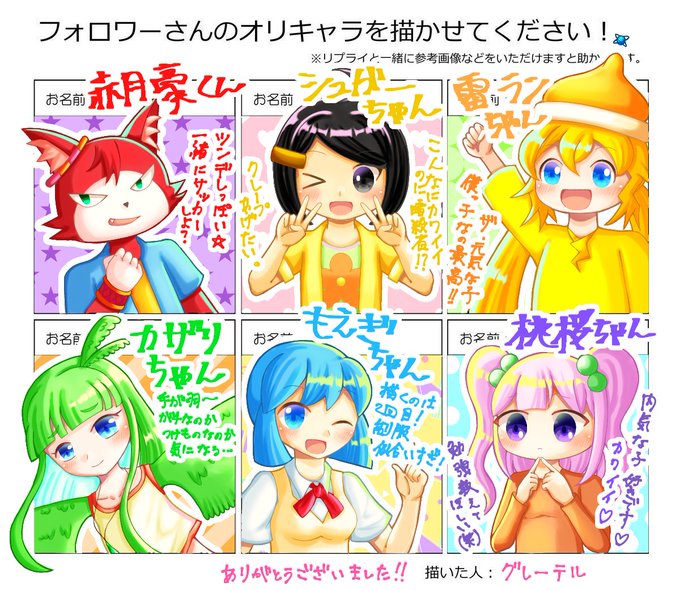 フォロワーさんのオリキャラさん描かせていただきました〜!! めっっっっっっっちゃ遅くなってしまって申し訳ないです…(特にイラリク企画の時から待ってた方) 6名の方ありがとうございました😭🙏