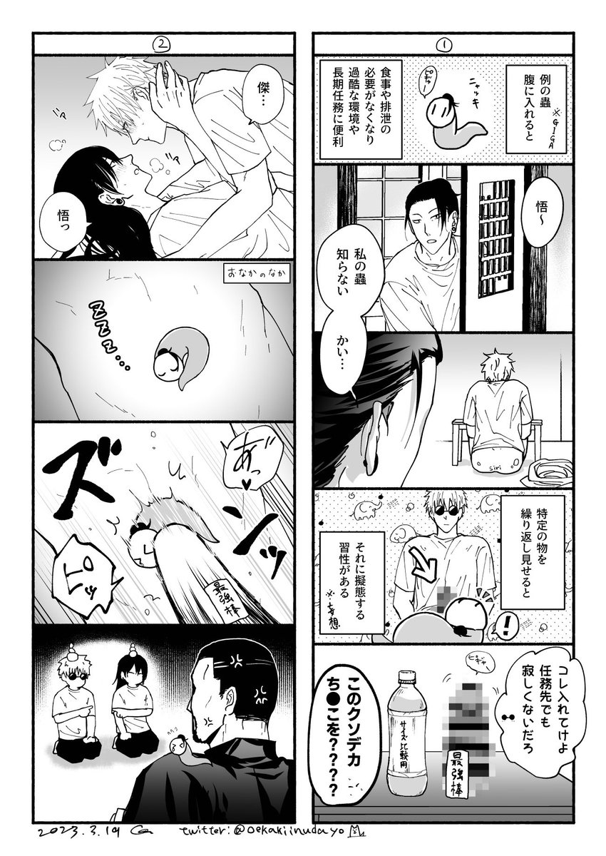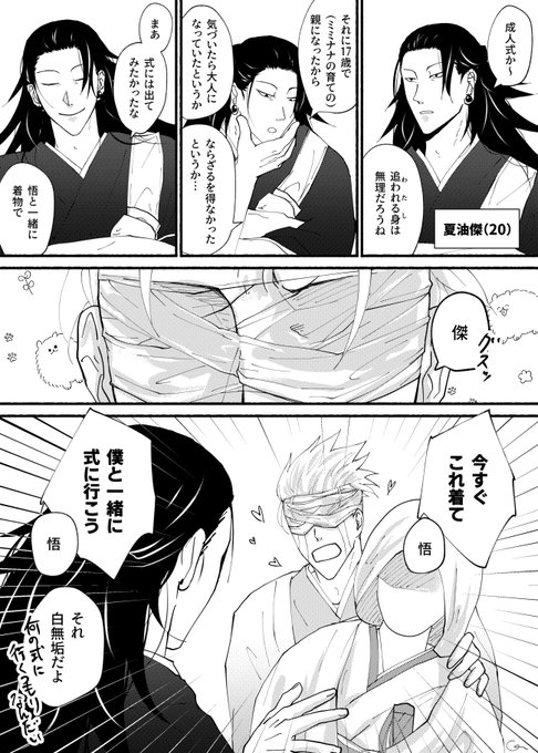 27 234 五夏(+🧠ちゃん) ⚠︎先週の本誌ネタ⚠︎ 🧠ちゃん着物下半身しか残ってないし、袴にポケットとか無いだろうし、獄門疆どこにしまってるの?→股間…???っていう漫画 23/01/02 20:00
