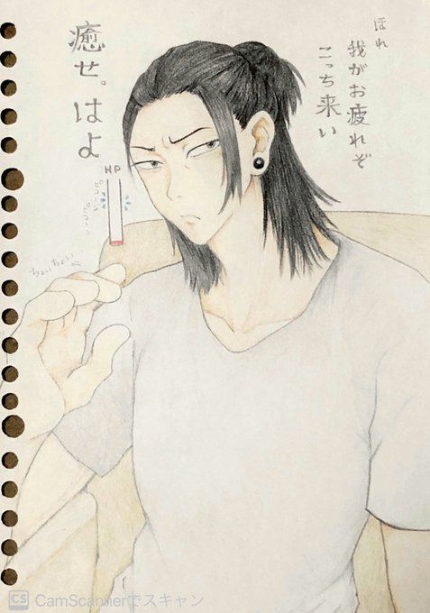 0 2 お疲れ夏油。 「目は口ほどに物を言う」 エナジーチャージは恋人で。 #呪術廻戦 #イラスト #色鉛筆 #夏油傑 21/09/11 11:42