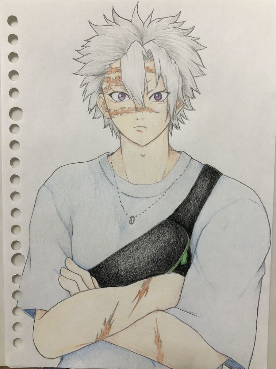 1 7 不死川実弥とデート 待ち合わせ編 #不死川実弥 #鬼滅の刃 #イラスト #色鉛筆 21/06/13 21:06