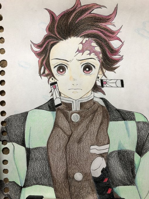 1 9 チビちゃん1号に頼まれた炭治郎! 何かの雑誌の表紙から模写したお! 肩が痛い… #鬼滅の刃 #竈門炭治郎 #模写 #イラスト #色鉛筆 21/06/20 20:49