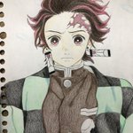 チビちゃん1号に頼まれた炭治郎! 何かの雑誌の表紙から模写したお! 肩が痛い… #鬼滅の刃 #竈門炭治郎 #模写 #イラスト #色鉛筆