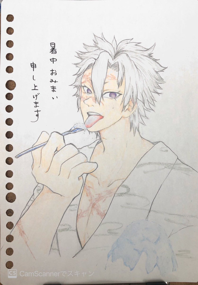 0 5 姉にLINEで送り付けた暑中見舞い。 暑い時はかき氷だね! #鬼滅の刃 #不死川実弥 #イラスト #色鉛筆 21/08/06 13:50