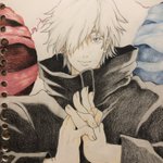 0 4 五条先生 完成♪ 瞳にラメ入れてキラキラさせといた❤ こんな人になら乱暴されたい笑 #五条先生 #五条悟 #模写 #イラスト #色鉛筆 21/03/01 18:13