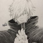 自分用のは鉛筆でモノクロに仕上げた( ¨̮ ) 五条先生ー!! 瞳だけ色鉛筆でほんのり青い …けど写メじゃ伝わらない!(笑) #呪術廻戦 #イラスト #鉛筆 #色鉛筆 #五条悟