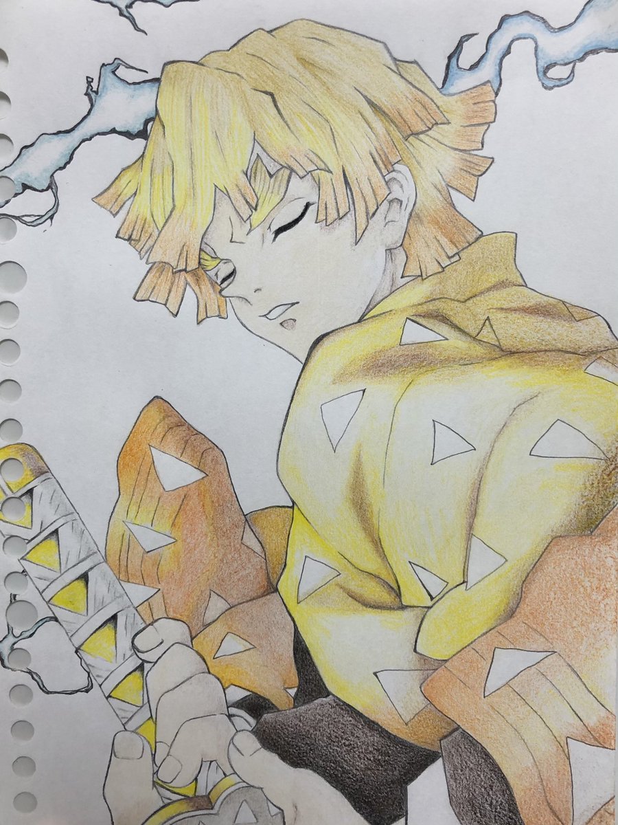 ちびちゃんのお友達からリクエスト貰った善逸! 昨日1日かけて色塗った! #我妻善逸 #鬼滅の刃 #色鉛筆 #模写 #イラスト