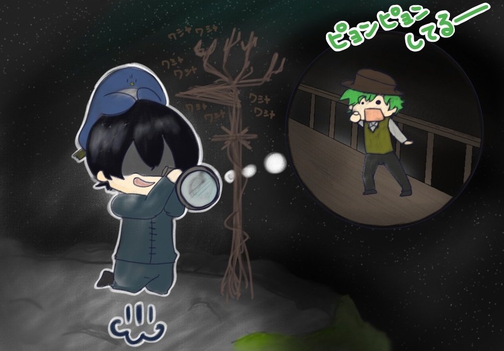 先端さんを追いかけるおらふくん おらふくんを追いかける高田さん(ずっ高) 3人一緒が嬉しいおらふくんが🥺 #せんたんあーと #見るかもわからん #高田大好きちゅちゅアート